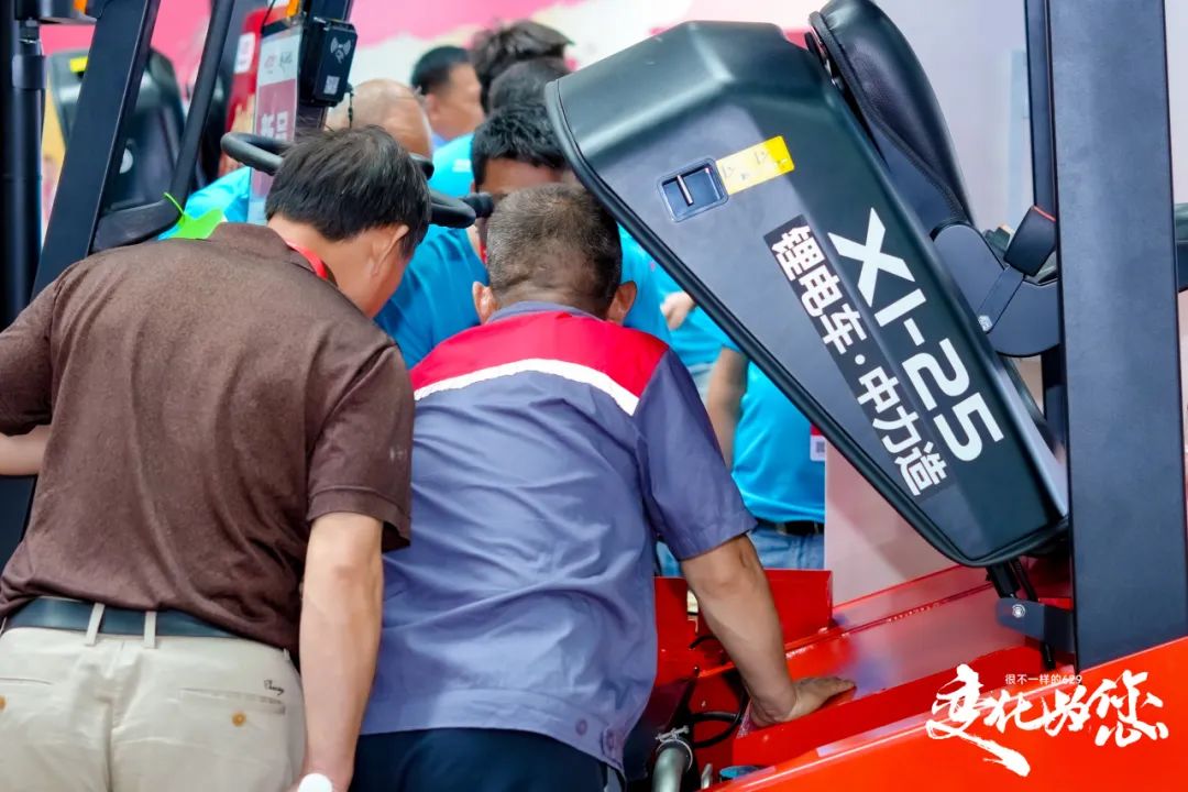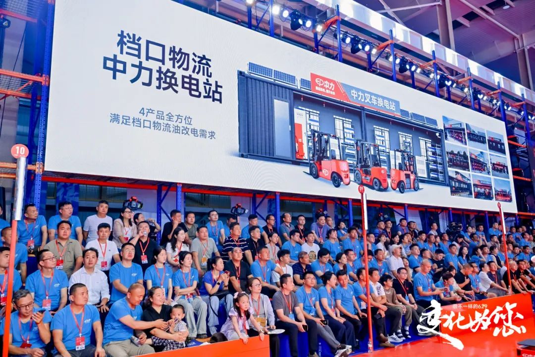 原次629现场,中力换电站处理规划再晋级,带去更多形式换电叉车,2分钟侧推换电更速更复杂,配搭560Ah年夜容量电池破译电动叉车绝航焦急;本能齐里升迁,知足下强度沉工况应用;换电站智能监控体系及时劣化电池分配,让动力哄骗服从再提高。